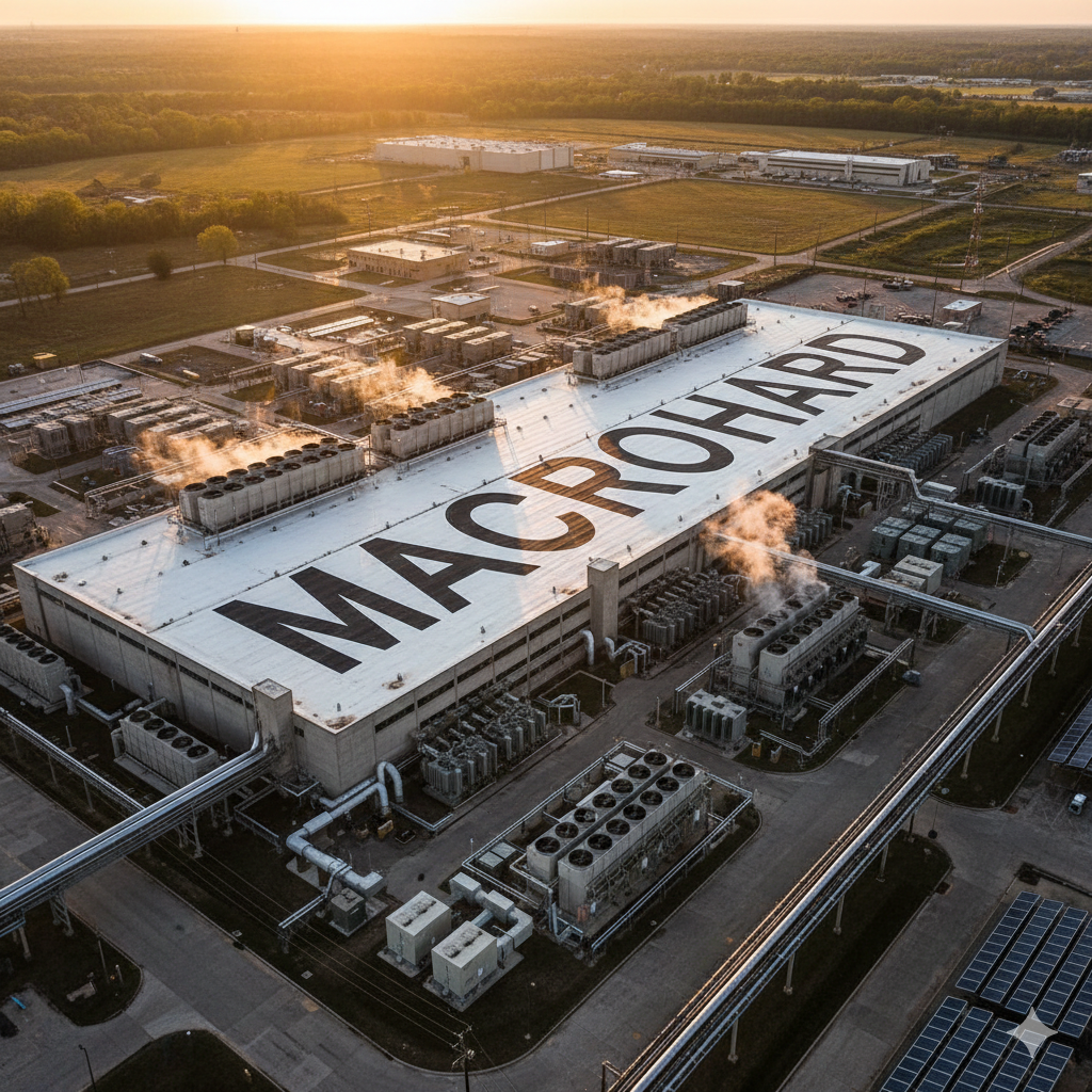 Stylized Pic of "MACROHARD" roof sign on xAI's Colossus II supercomputer in Memphis